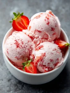 Imagine scooping into a bowl of soft, creamy ice cream with ribbons of real strawberries swirled throughout. The texture is velvety, the flavor is bright and fresh, and every bite melts smoothly on your tongue.
