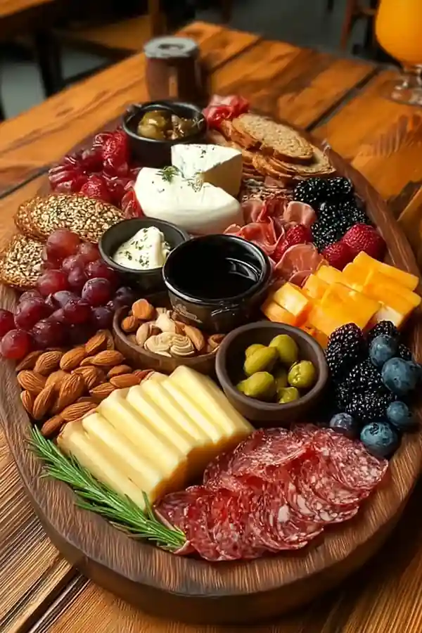 - Anchor with cheese: Place cheese ball in the center, surround with cheddar cubes and Swiss slices. 🧀