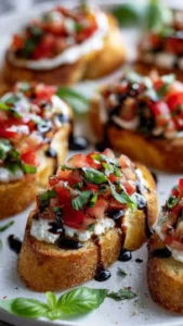 Crispy Italian Bruschetta with Mozzarella is a delightful appetizer that brings a burst of freshness to any gathering. It’s simple yet flavorful, making it a favorite for both casual get-togethers and elegant parties. The combination of crunchy bread, juicy tomatoes, creamy mozzarella, and fragrant basil is truly irresistible. Plus, it’s quick to prepare and always impresses your guests!