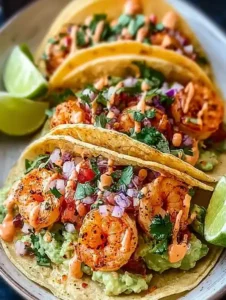 These Shrimp Tacos with the BEST Sauce are exactly what your taco night has been missing. Juicy, spiced shrimp are quickly sautéed, tucked into warm corn tortillas, and topped with crunchy cabbage, creamy avocado, fresh cilantro, and a zesty sauce that ties everything together. Ready in just 20 minutes, this recipe is perfect for busy weeknights, casual entertaining, or whenever you’re craving bold, fresh shrimp tacos without a lot of work. Naturally gluten-free (thanks to corn tortillas) and super customizable, these tacos are easy to dress up with salsa, sour cream, or extra lime. One bite and you’ll understand why this is a true flavor explosion.