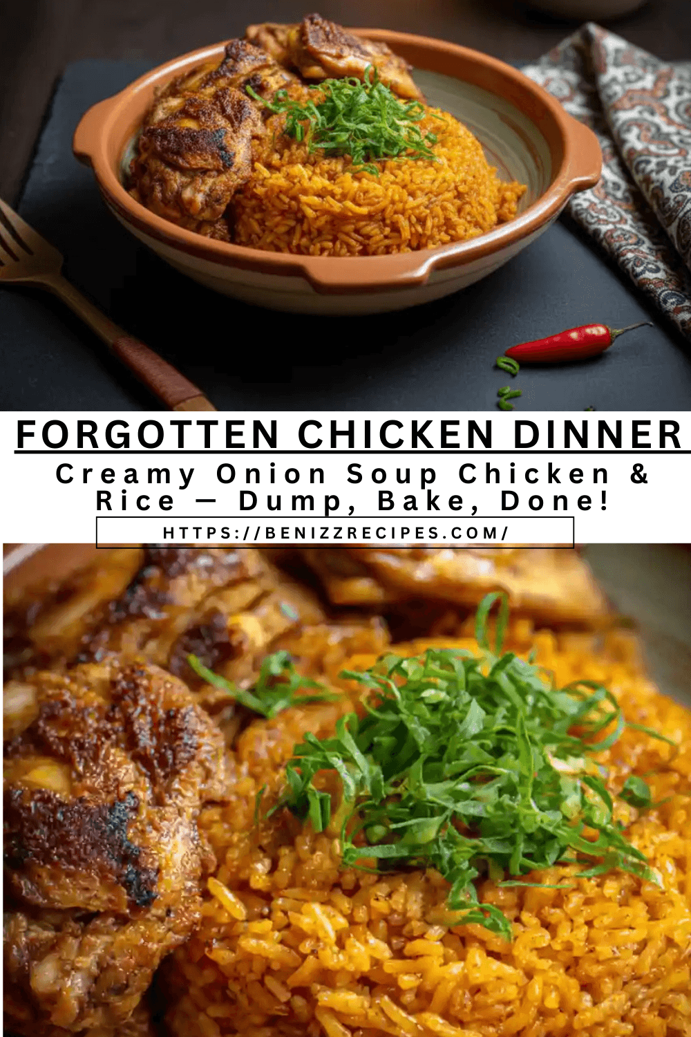 This “Forgotten Chicken” is the ultimate low-effort comfort meal creamy rice, savory onion flavor, and juicy chicken with almost zero work. Perfect for busy nights when you just want dinner handled.