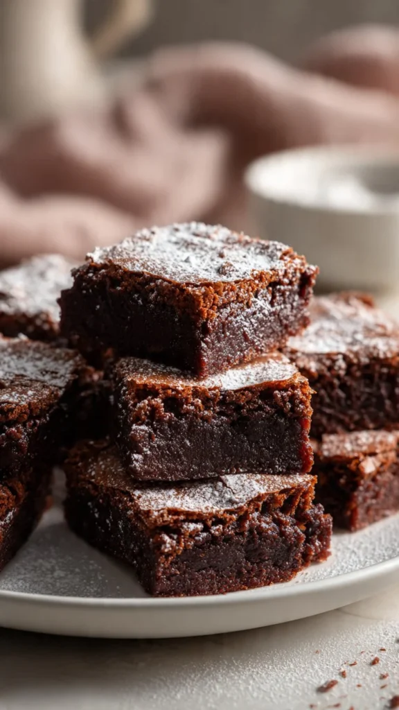 6. Cool and Serve: Let the brownies cool completely in the pan. Dust with powdered sugar, cut into squares, and enjoy!
