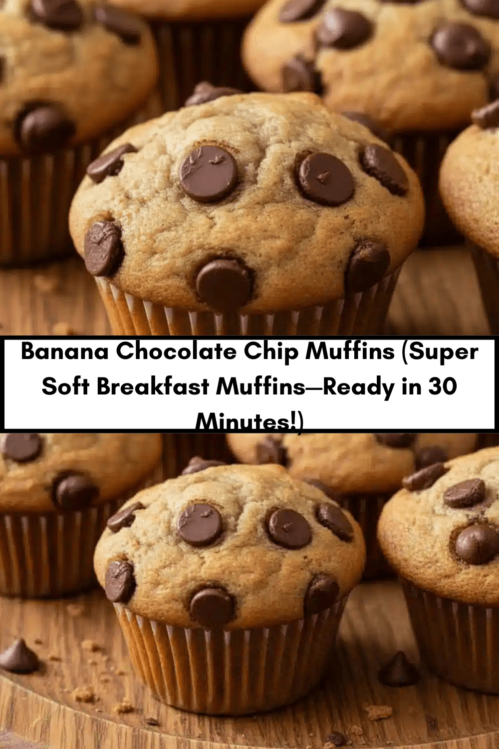 These Banana Chocolate Chip Muffins are the easiest way to turn ripe bananas into a cozy breakfast or grab-and-go snack. They bake up soft, fluffy, and loaded with melty chocolate chips in every bite like a bakery treat you can make at home in just 30 minutes. No fancy steps, no mixer needed, and they’re perfect for busy mornings, lunchboxes, or afternoon cravings. Plus, they freeze beautifully, so you can always have a sweet breakfast ready when you need it. If you love easy muffin recipes and banana breakfast ideas, save this one you’ll make it on repeat!