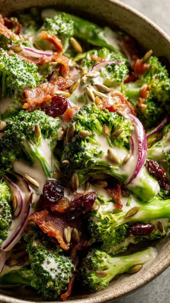 To store the broccoli salad, place it in an airtight container in the refrigerator. It will stay fresh for about 3-5 days. If you plan to make it ahead of time, consider holding off on adding the sunflower seeds until just before serving. This will help keep them crunchy.