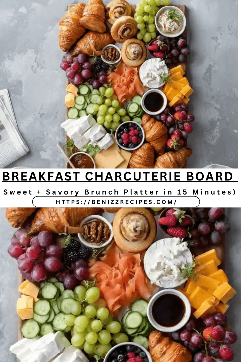 A Breakfast Charcuterie Board is the easiest way to serve a beautiful, crowd-pleasing brunch without cooking a full spread. You get a little of everything mini pastries, breads, cheeses, fresh fruit and veggies, plus simple proteins like hard-boiled eggs and smoked salmon. It’s perfect for holidays, sleepovers, birthday mornings, and “come whenever” brunch plans because guests can graze at their own pace. The best part? You can customize it to your budget and board size, and it comes together in about 15 minutes. Just fill the board with color, texture, and variety and watch it disappear.