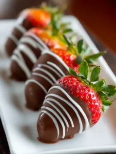 These Chocolate Covered Strawberries are the ultimate Valentine’s Day treat simple, stunning, and guaranteed to impress. With just a few ingredients, you’ll get glossy, snappy chocolate shells and juicy berries inside. The secret is all in the prep: super-dry strawberries + gentle melting for smooth chocolate that coats beautifully. Drizzle with white chocolate for that bakery look, then add toppings like chopped nuts, mini chips, or sprinkles for extra fun. Whether you’re making a romantic dessert, party platter, or edible gift, this easy chocolate covered strawberries recipe comes together fast and looks totally Pinterest-worthy.