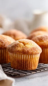 - While the muffins are still warm, dip the tops into the cinnamon sugar mixture, pressing gently to ensure it adheres well.
