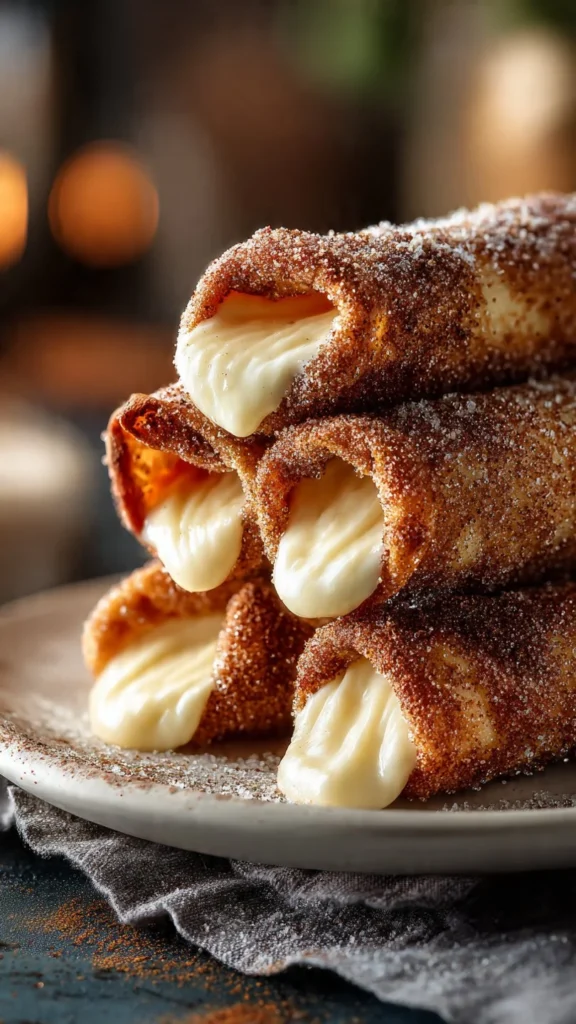 - Once cooked, roll the warm roll-ups in the cinnamon-sugar mixture to coat them thoroughly.