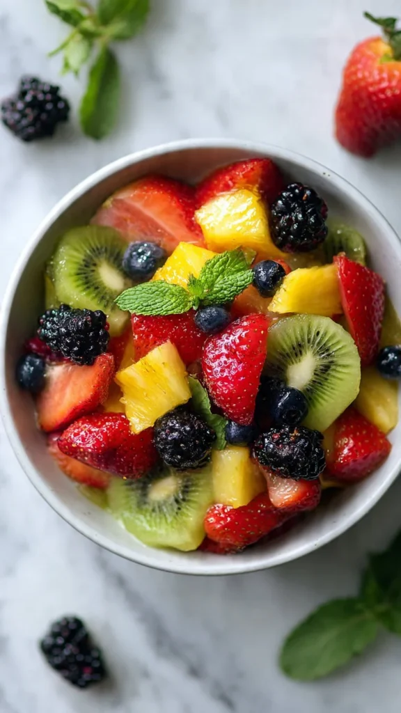 - Garnish with mint leaves before serving. Enjoy your fruit salad!