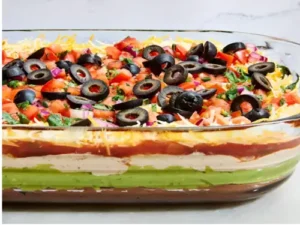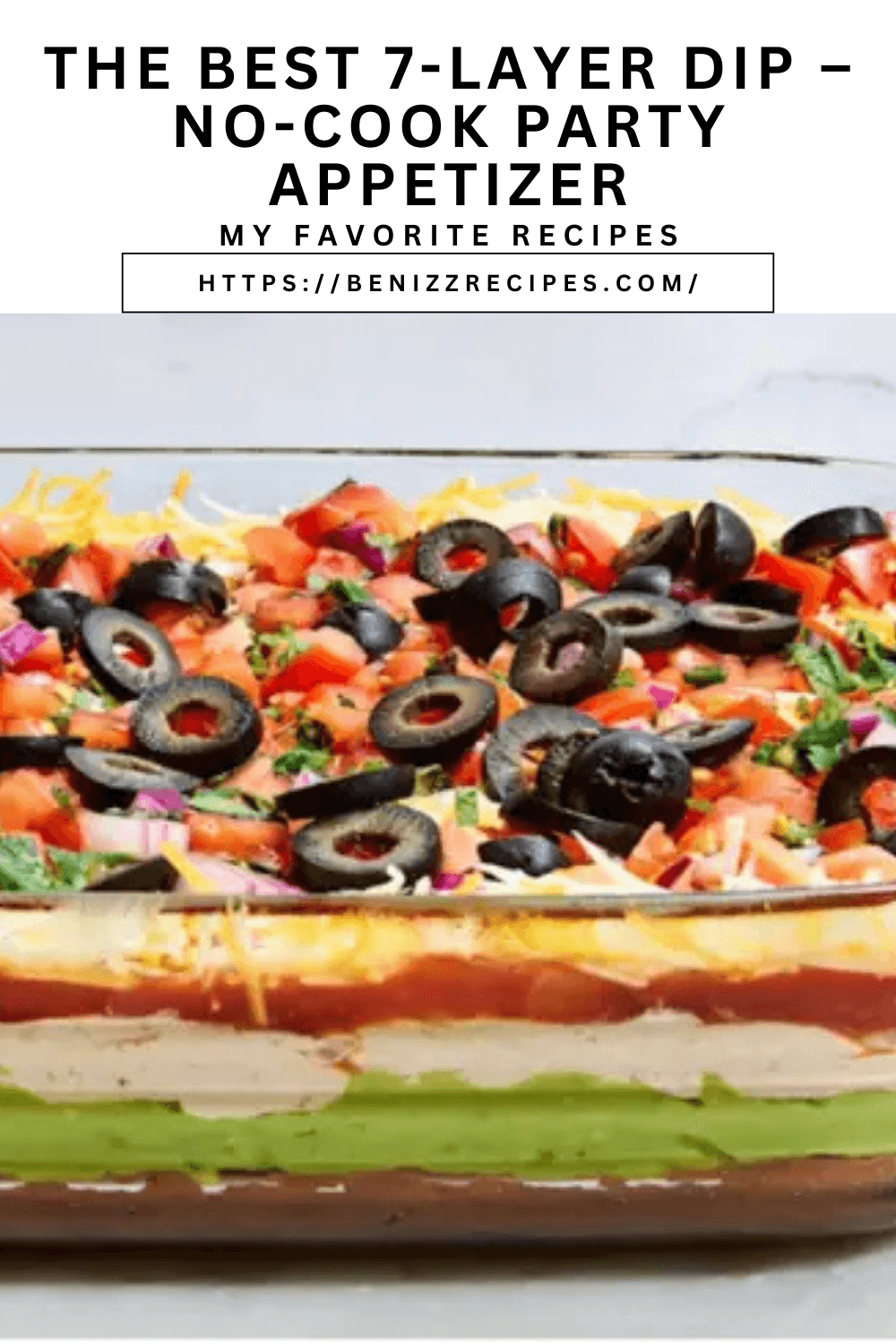 This colorful and crowd-pleasing 7-layer dip combines creamy, savory, and fresh layers into one scoopable dish—perfect for parties and game day!