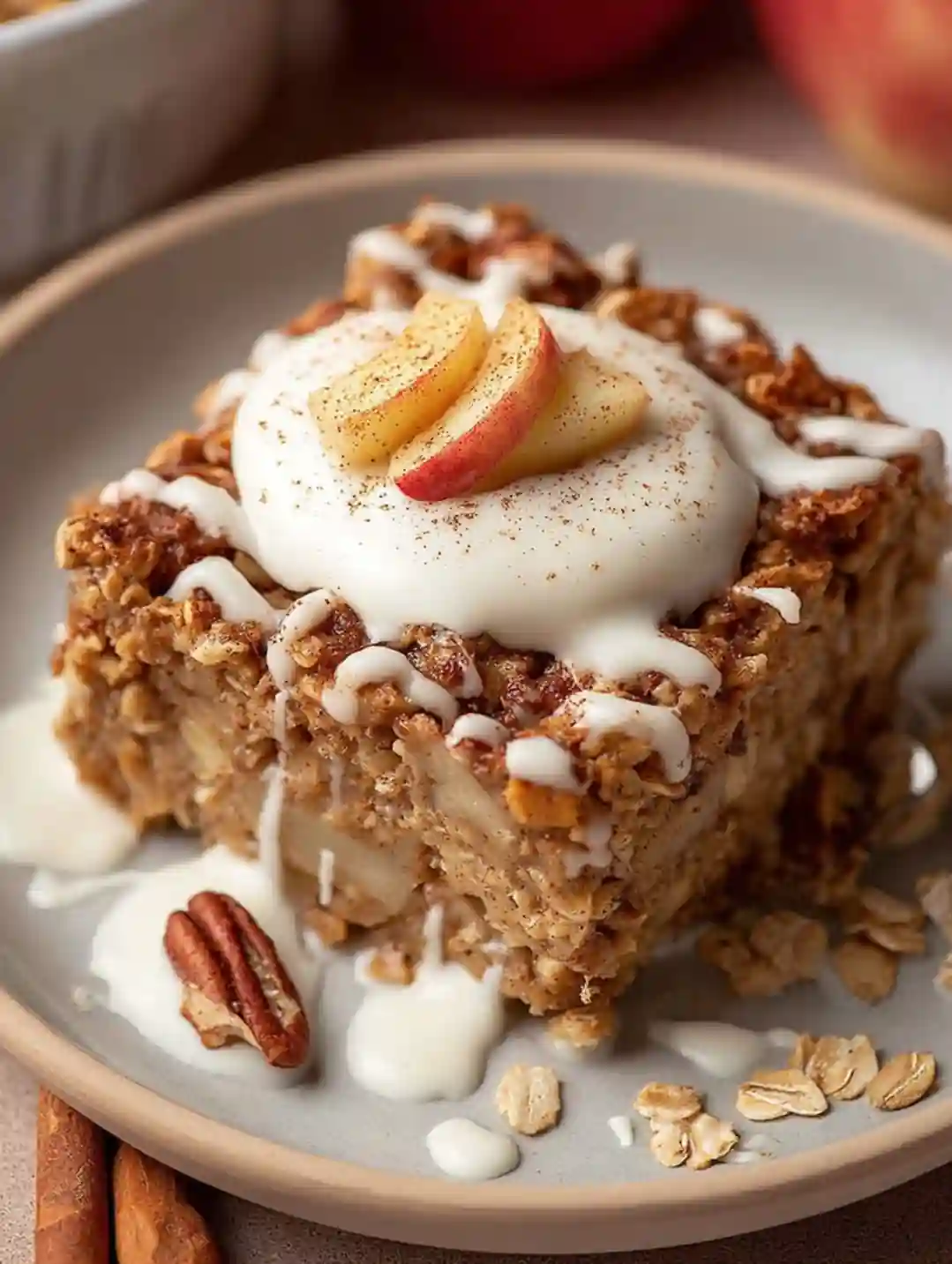 - Crunchy topping: Sprinkle a little extra oats mixed with cinnamon and a drizzle of maple syrup on top before baking.
