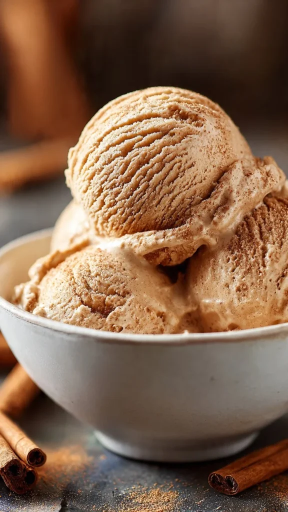 Serve this ice cream in a bowl or on a cone. You can top it with extra cinnamon, a drizzle of caramel sauce, or chocolate sauce for added flavor. It’s also great with chopped nuts or whipped cream. You can enjoy it alongside your favorite desserts, like pie or cake.
