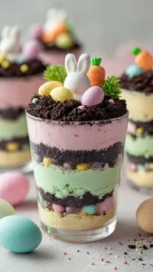 - Chill in the refrigerator for at least 30 minutes before serving. Enjoy your festive Easter Dirt Cups!