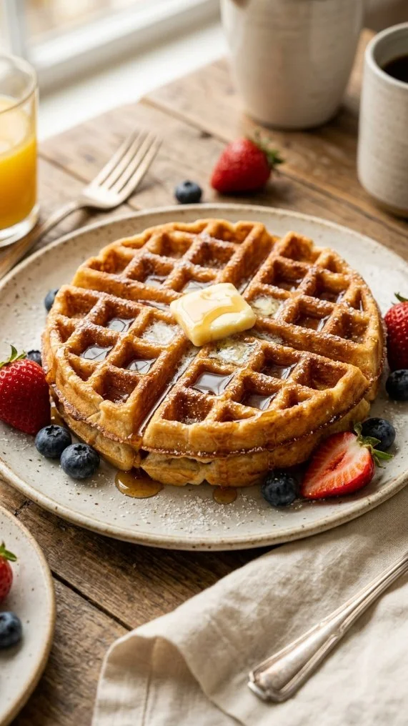 Serve these waffles warm, topped with your favorite ingredients. You can use maple syrup, fresh berries, sliced bananas, or a dollop of whipped cream. They also pair well with a sprinkle of powdered sugar for extra flavor.