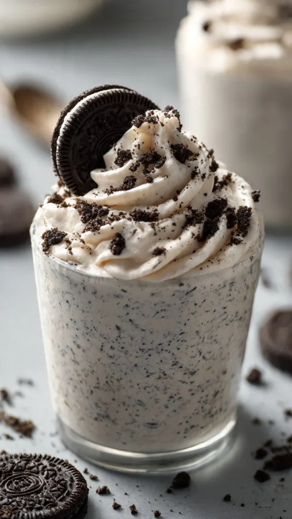 Serve the mousse chilled in individual cups. You can garnish it with extra crushed Oreo cookies or whipped cream for added flair. This mousse makes a wonderful dessert for parties, gatherings, or simply enjoying at home.