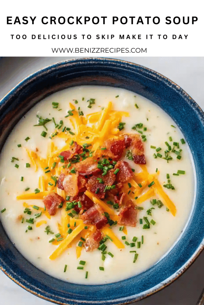 This Easy Crockpot Potato Soup Recipe is everything you want in a comfort dish creamy, cheesy, and made with simple ingredients you can toss straight into your Crock Pot. It’s perfect for cozy nights when you need something easy and warm, and ideal for fans of easy Crock Pot loaded potato soup, creamy loaded baked potato soup crockpot bowls, or the always-popular Crock Pot loaded baked potato soup with hashbrowns.