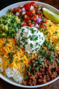 Meet your new favorite weeknight dinner: the Easy Taco Rice Bowl! 🌮💛 Bursting with flavor, color, and protein, this one-bowl wonder turns classic taco ingredients into a wholesome, satisfying meal that’s ready in just 20 minutes. Tender seasoned beef (or chicken!), fluffy rice, crisp veggies, creamy avocado, and melty cheese all the best taco vibes in one bite. Perfect for meal prep, busy nights, or when you’re craving something hearty and healthy. 🍚✨ Each bowl is customizable, family-friendly, and guaranteed to hit the spot. Fast, fun, and full of flavor this taco bowl will be your go-to for an easy dinner win! 🙌