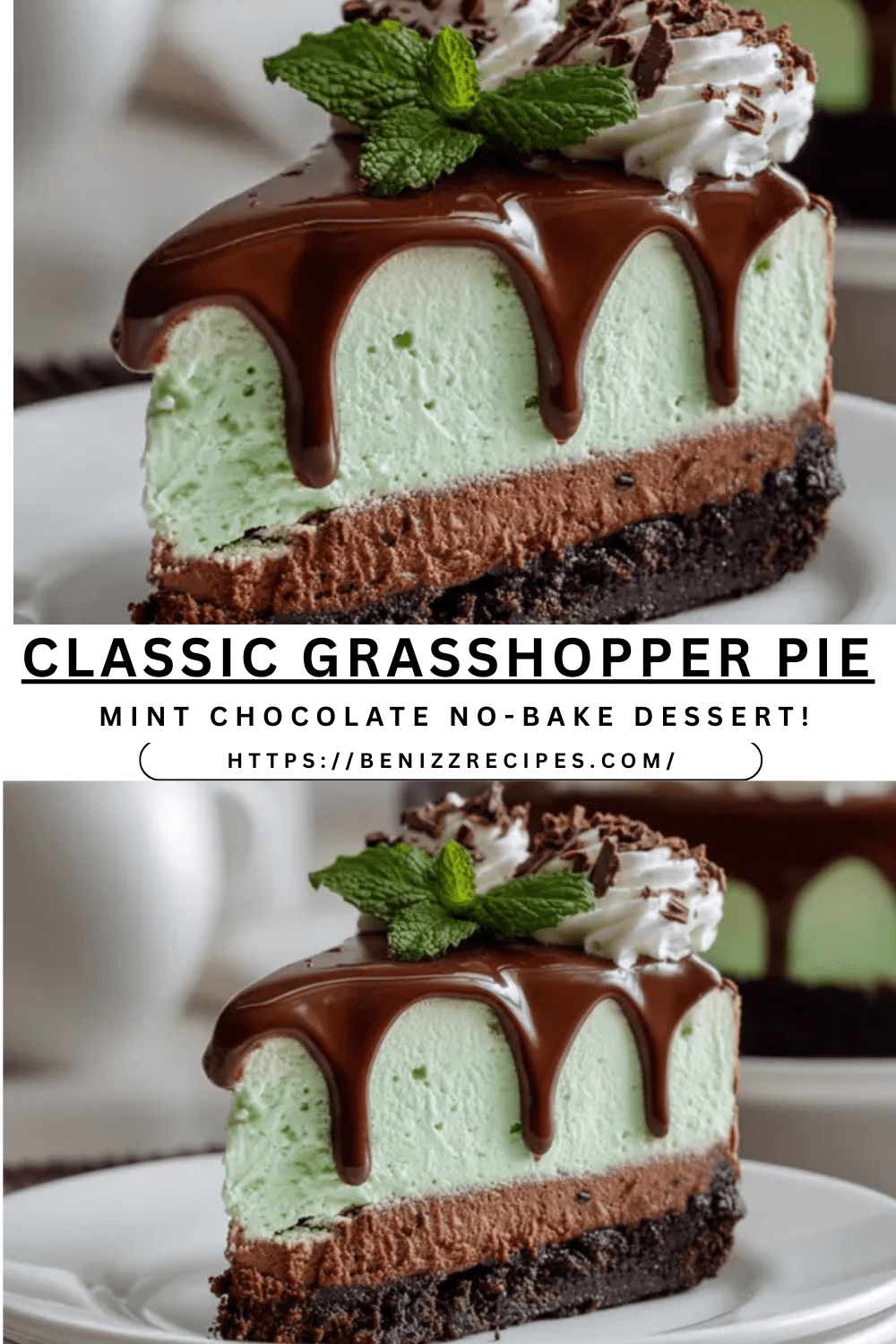 Grasshopper Pie (Creamy Mint Chocolate No-Bake Dessert)
