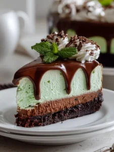 The result? A silky, airy filling with cool mint flavor and rich chocolate cookie crunch in every bite. Best of all, this dessert is no-bake and freezer-set, making it an easy make-ahead treat for parties or holiday gatherings.