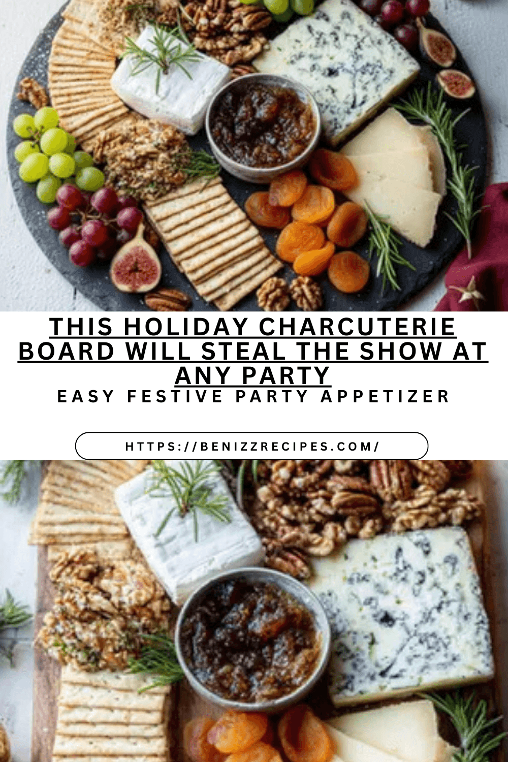 This Holiday Charcuterie Board is the show-stopping appetizer your party table needs. Loaded with a variety of cheeses, savory meats, seasonal fruits, crunchy nuts, and sweet spreads, it’s the perfect balance of flavor, texture, and festive flair. Whether you’re hosting a Christmas gathering, New Year’s celebration, or winter dinner party, this easy 30-minute board makes entertaining stress-free and elegant. With beautiful colors like ruby pomegranate, bright citrus, and fresh rosemary sprigs, this holiday appetizer is as stunning as it is delicious.