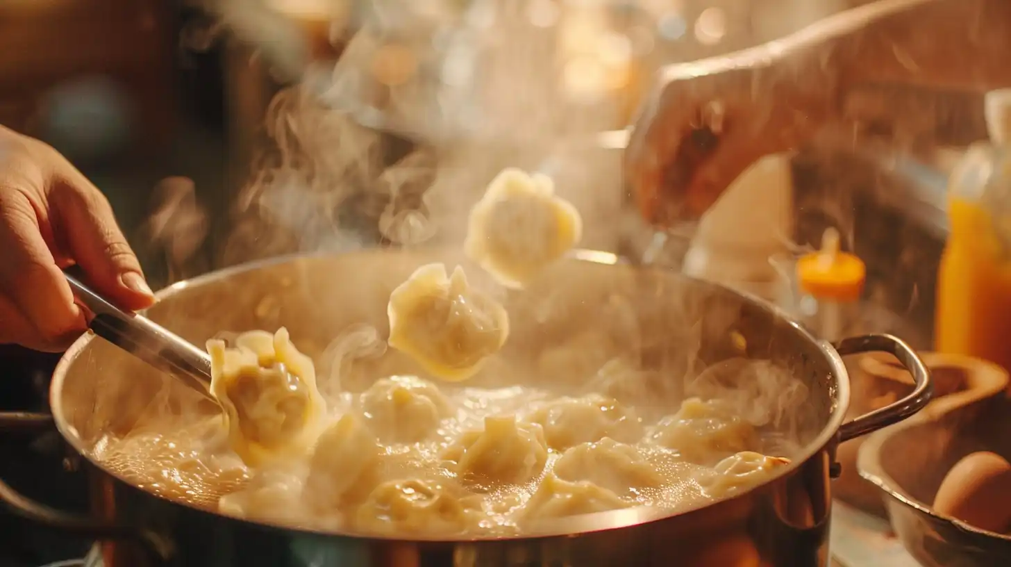 Pour in coconut milk and broth, then add soy sauce, brown sugar, and a pinch of salt. Stir well and bring to a gentle simmer. - Prepare dumpling dough: