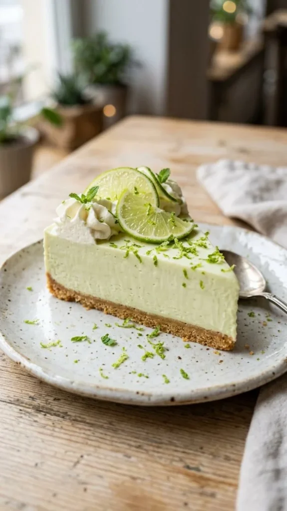 To serve Key Lime No-Bake Cheesecake, slice it into wedges and place each piece on a plate. You can add a dollop of whipped cream on top for extra flavor. For a special touch, consider garnishing with a slice of lime or a sprinkle of lime zest.