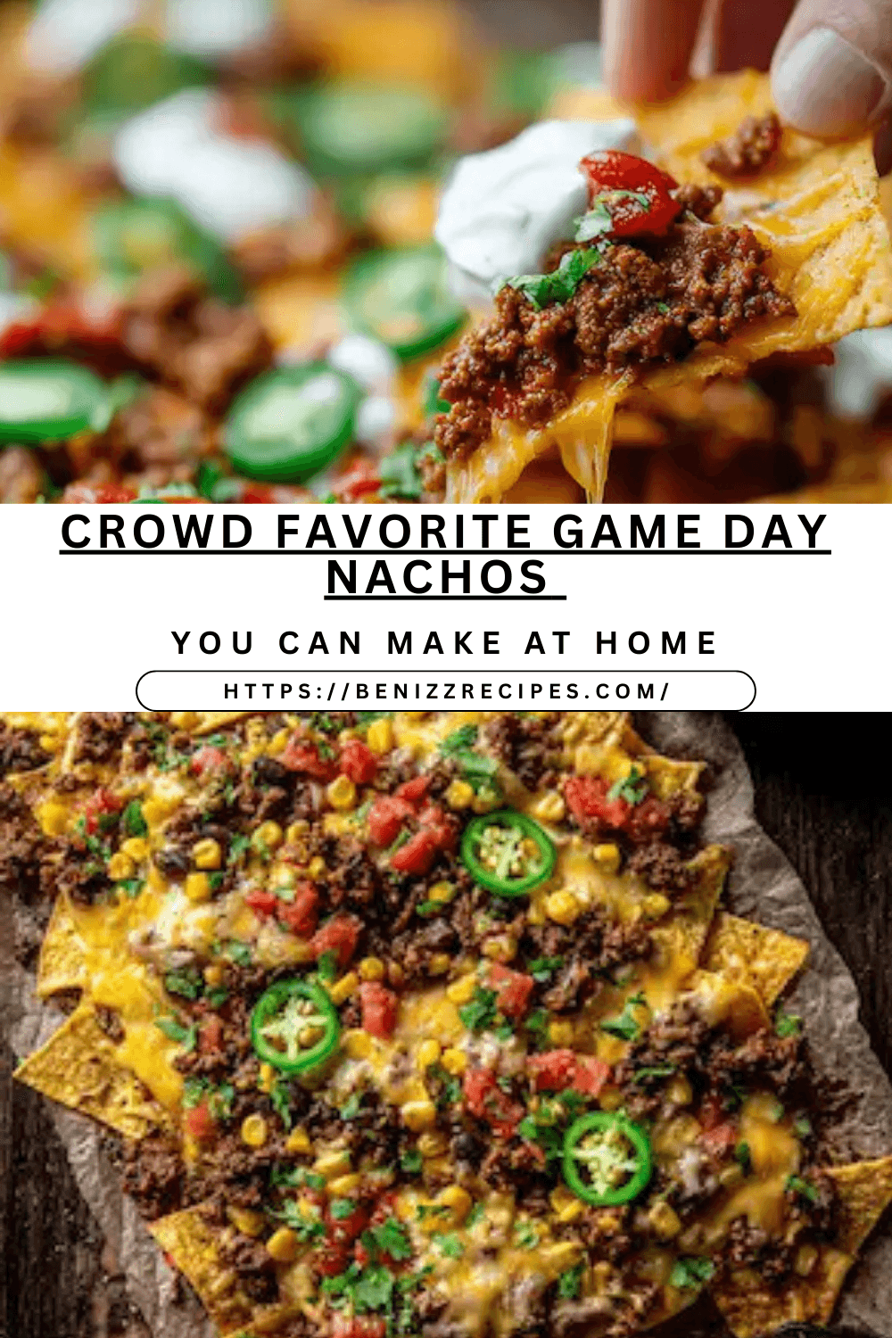Keywords: sheet pan nachos, loaded nachos recipe, easy nachos recipe, baked nachos, ground beef nachos