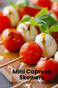 These Mini Caprese Skewers are the ultimate party appetizer fresh, vibrant, and beautifully bite-sized! Made with juicy cherry tomatoes, creamy mozzarella, and fragrant basil, each skewer delivers classic Caprese flavor in the most adorable grab-and-go form. They’re incredibly easy to assemble and require ZERO cooking, making them perfect for holidays, summer gatherings, brunch spreads, potlucks, baby showers, or anytime you need a fast and elegant appetizer. Finished with a simple balsamic-free glaze (no alcohol!), this Emma’s Cake Studio favorite is fresh, healthy, colorful, and always one of the first platters to disappear.