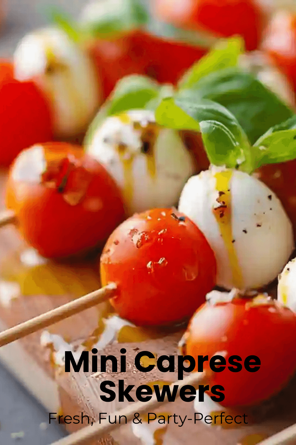 - Dry mozzarella: Helps the skewers hold together beautifully.
