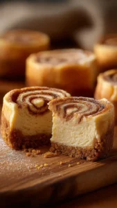 Delightful mini cheesecakes that combine the creamy texture of cheesecake with the warm flavors of cinnamon rolls, perfect for any gathering.