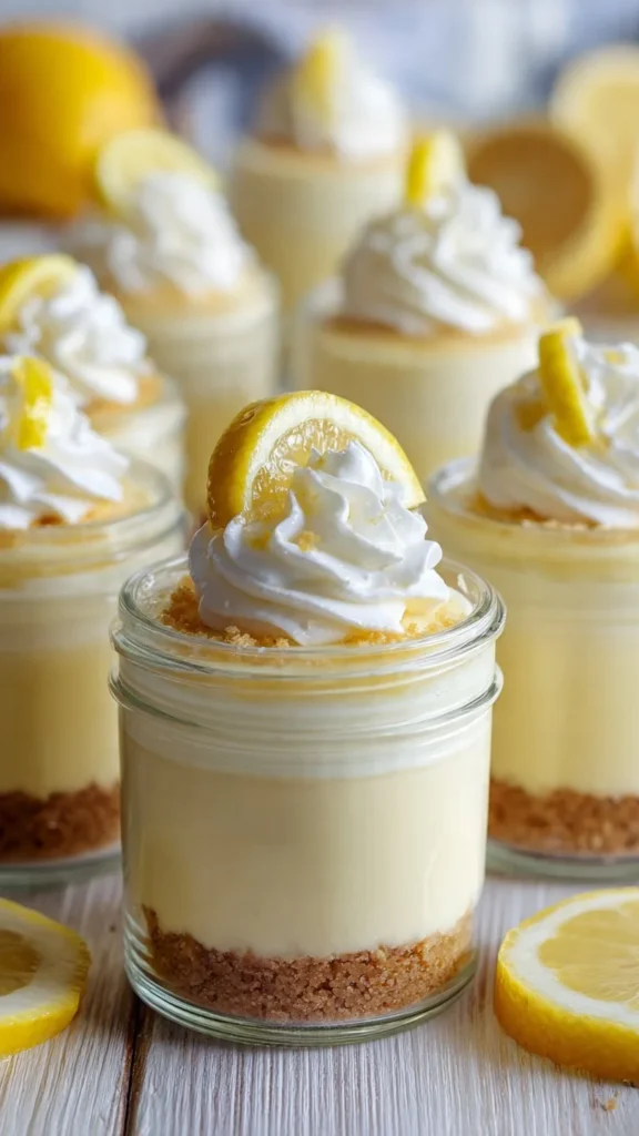 Serve these delightful Mini Lemon Cheesecake Cups chilled, straight from the fridge. They look beautiful in clear cups, showing off the layers of graham cracker and creamy filling. You can top them with additional lemon zest or whipped cream for a prettier presentation. These cups are perfect alongside coffee or tea.