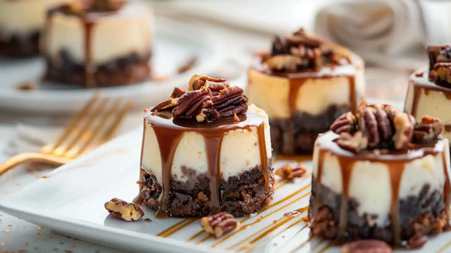 Get ready to impress with these Mini Turtle Brownie Cheesecake Bites a rich, fudgy, bite-sized dream come true! Each mini cheesecake has a chewy brownie base, a silky cheesecake center, and a topping of gooey caramel, melted chocolate, and crunchy pecans. Perfect for holidays, birthdays, or any celebration, these handheld treats deliver all the decadence of a full-size turtle cheesecake — but in an adorable, pop-in-your-mouth form. From Emma’s Cake Studio, these little showstoppers are everything you love about turtles creamy, nutty, and perfectly portioned!