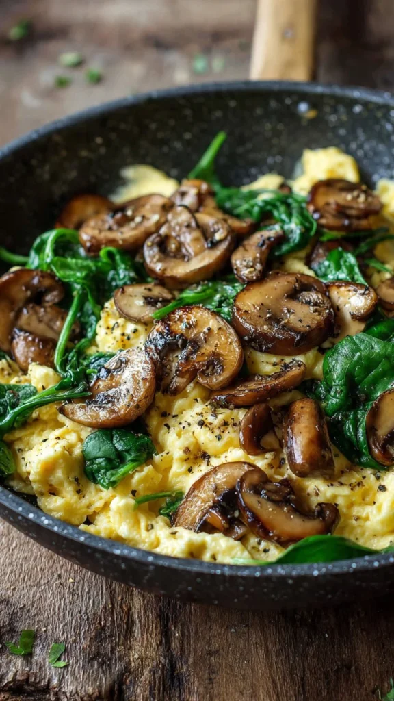 Mushroom Spinach Scrambled Eggs are a quick and easy meal perfect for breakfast or brunch. This recipe is packed with nutrients from the fresh spinach and mushrooms, making it a healthy choice. Plus, it’s simple to make and can be enjoyed in just a few minutes. Whether you’re cooking for yourself or for a group, these scrambled eggs are sure to please.