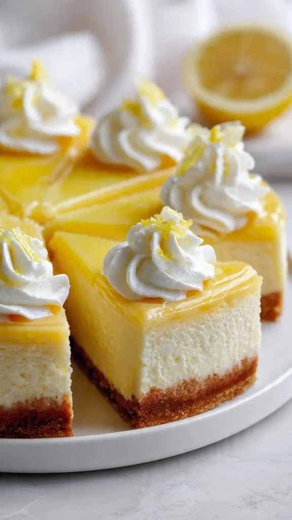 Bright and sunny New York-style lemon cheesecake is a perfect dessert for any occasion. Its creamy texture and tangy flavor are irresistible. The graham cracker crust adds a delightful crunch, making every bite a joy. Whether you are celebrating a special event or just want a sweet treat, this cheesecake will surely brighten your day.