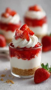 No-Bake Cheesecake Cups are a perfect dessert for anyone looking for something tasty and easy to make. They require no baking, making them a great choice for hot summer days or whenever you’re short on time. The creamy cheesecake filling pairs beautifully with a crunchy graham cracker crust and your favorite fruit toppings. This recipe is sure to impress friends and family while being simple enough for anyone to make.