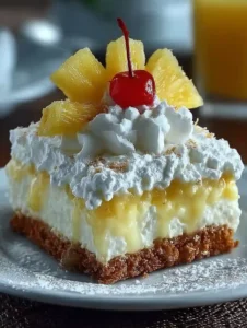 This No-Bake Pineapple Cream Dessert is an old-school favorite for a reason: it’s creamy, fluffy, sweet, and ridiculously easy. You get a buttery graham cracker crust topped with a pineapple-cream filling that tastes like a tropical dream no oven needed. It’s the perfect easy no-bake dessert for potlucks, holidays, summer parties, or when you just want something sweet without the extra work. Make it ahead, let it chill, and it slices beautifully once set. Bonus: it’ssuper customizable add extra coconut, swap the crust, or top with more fruit for a pretty finish.