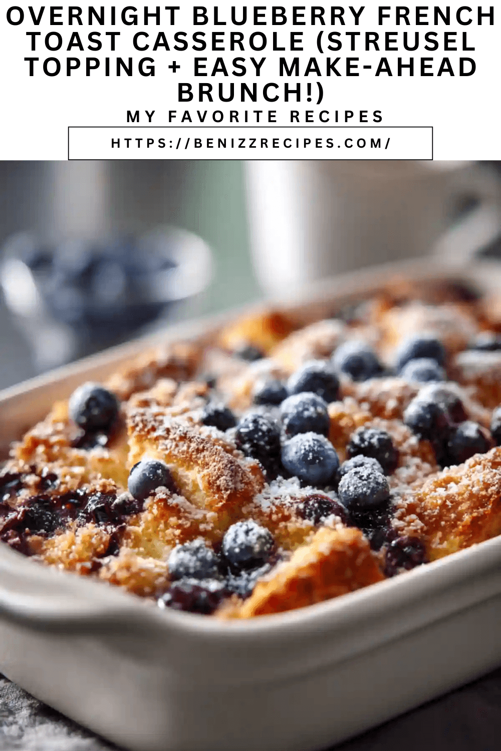 This overnight blueberry French toast casserole is a cozy make-ahead brunch recipe layered with vanilla-cinnamon custard, juicy blueberries, and a buttery streusel topping. Just bake in the morning for an easy, crowd-pleasing breakfast.