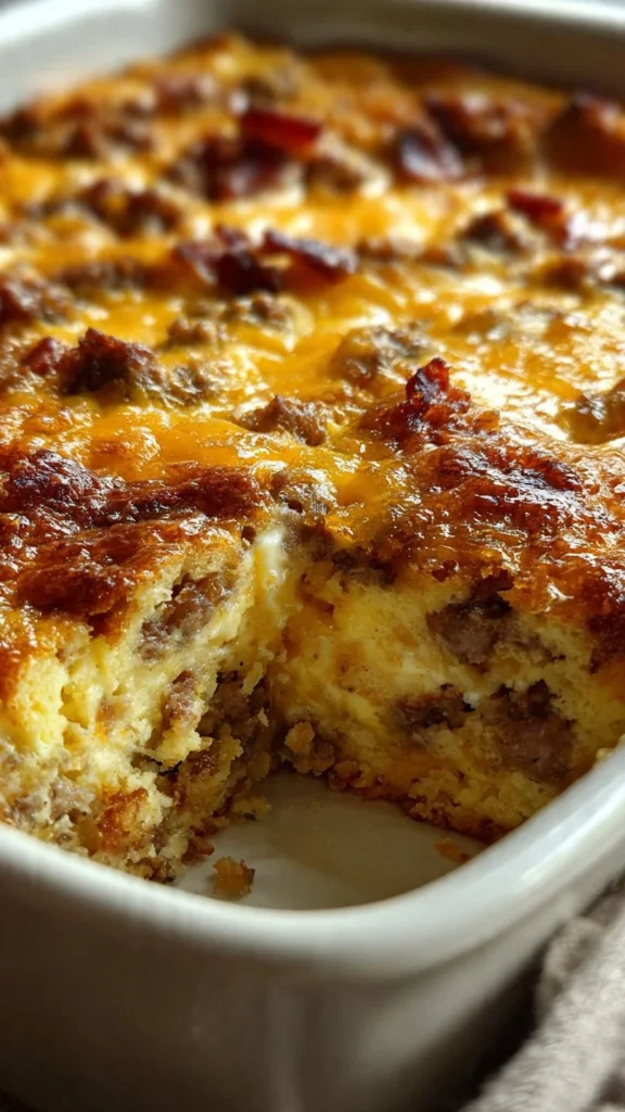 2. Can I make this casserole without bacon? Absolutely! Just use extra sausage or leave it out entirely for a lighter dish.