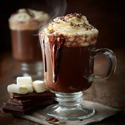 - The hot chocolate is slightly thickened and coats the back of a spoon.