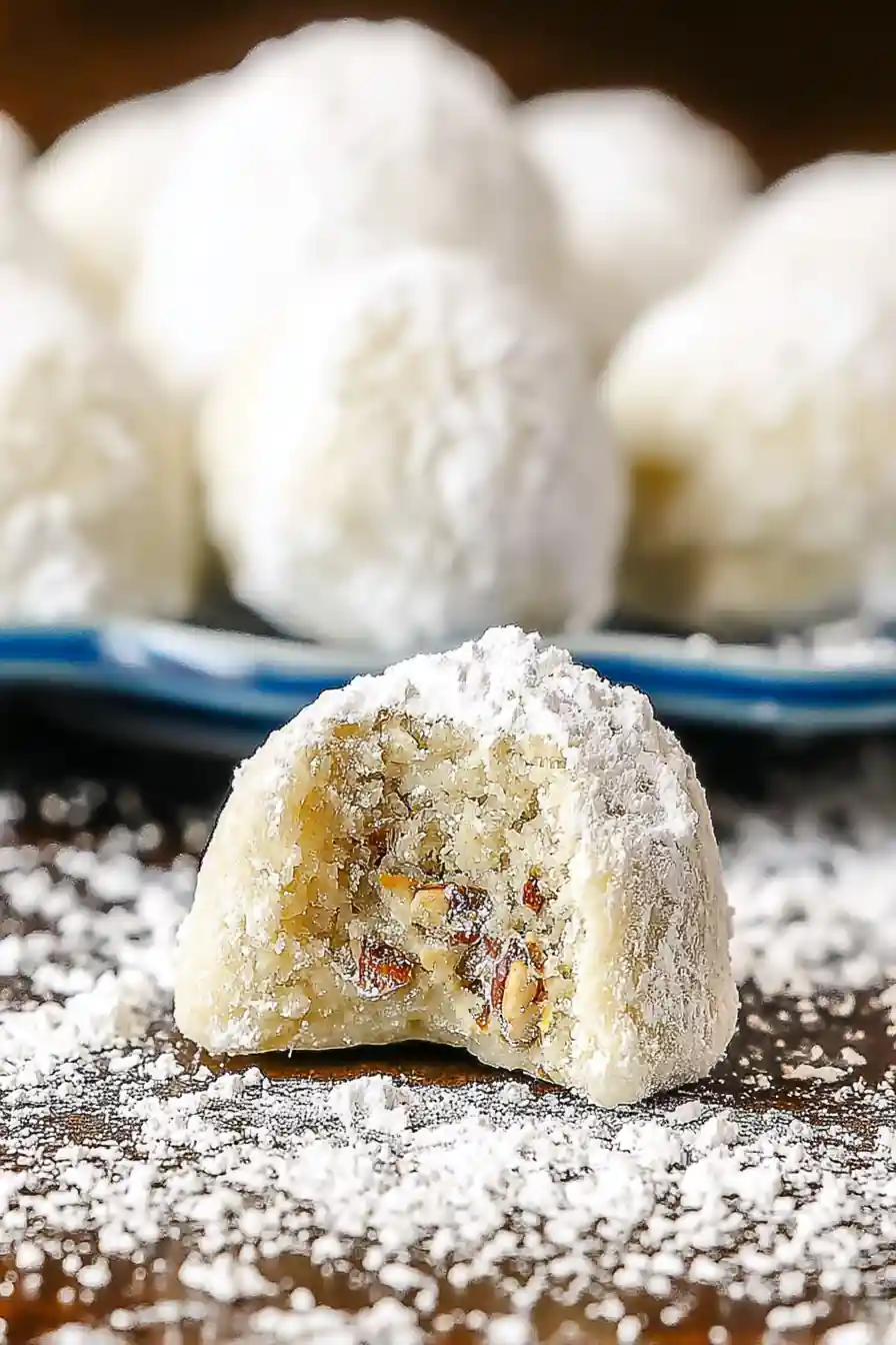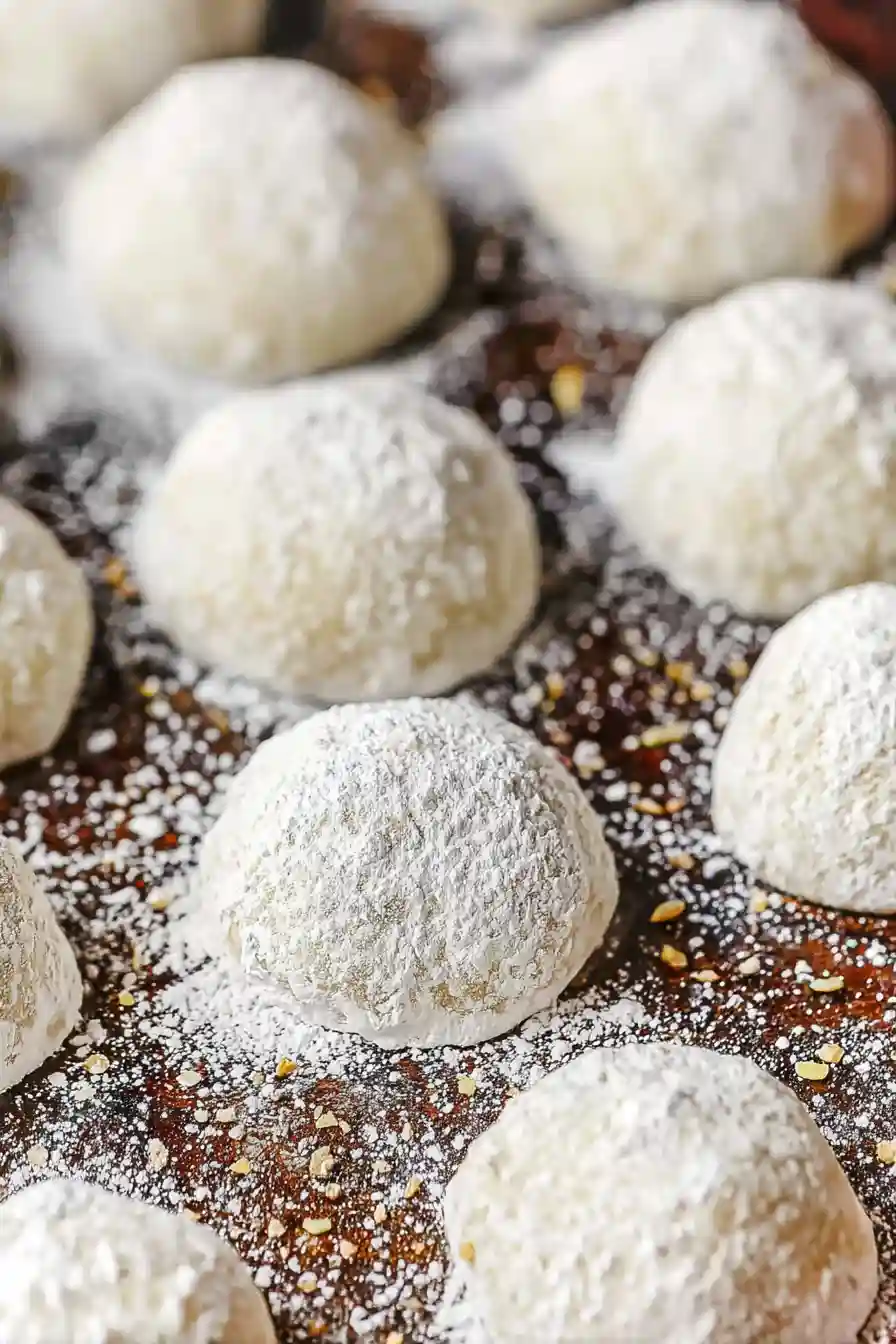 6. Snowball magic: Let cookies cool for 5 minutes, then roll warm cookies in powdered sugar. Cool completely, then roll again for the full “snowball” effect.