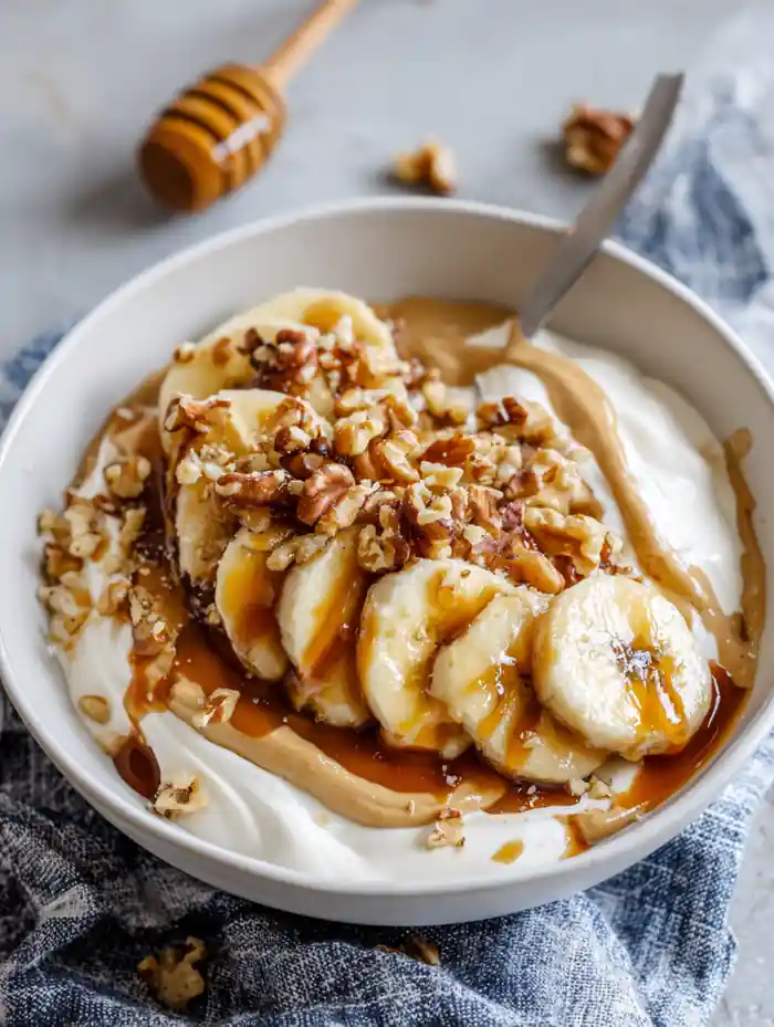 These Salted Caramel Banana Yogurt Bowls are the quickest way to make snack time feel like dessert. Thick Greek yogurt gets topped with sweet banana slices, crunchy granola, and a drizzle of salted caramel sauce for that perfect sweet-salty finish. It’s beginner-friendly, uses simple ingredients, and comes together in just 7 minutes ideal for busy mornings, after-school snacks, or a light dessert when you want something fast. The best part? You can customize it endlessly with berries, nuts, chocolate chips, or extra crunch. If you’re looking for an easy yogurt bowl recipe that tastes fancy but takes zero effort, this one’s a keeper.