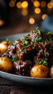 - Transfer the beef and potatoes to a serving platter. Spoon extra sauce over the top, sprinkle with fresh parsley, and serve warm.