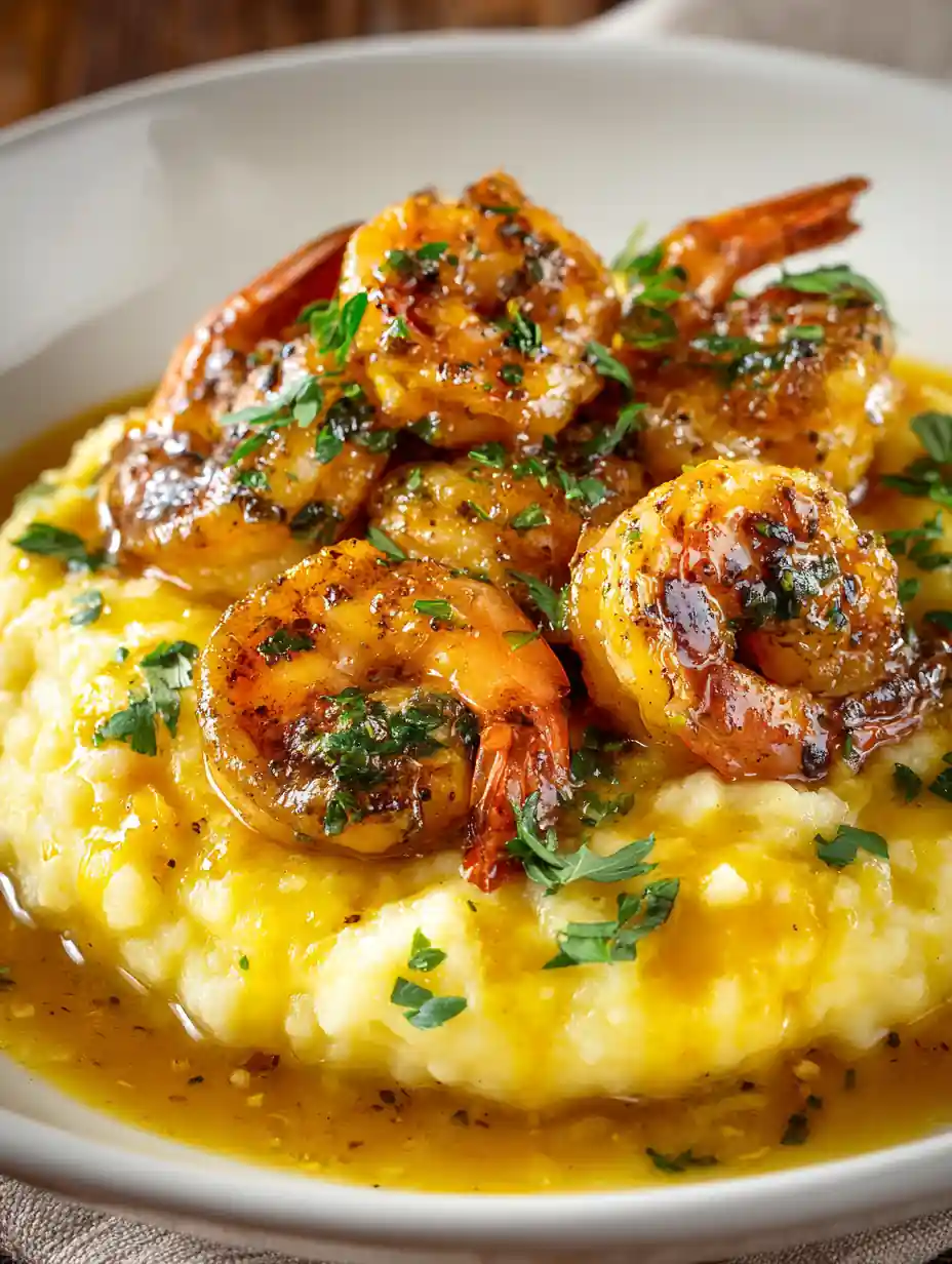 Melt butter in skillet → cook shrimp 1–2 minutes per side → remove. - Make creamy shrimp gravy