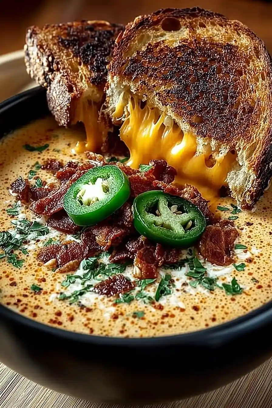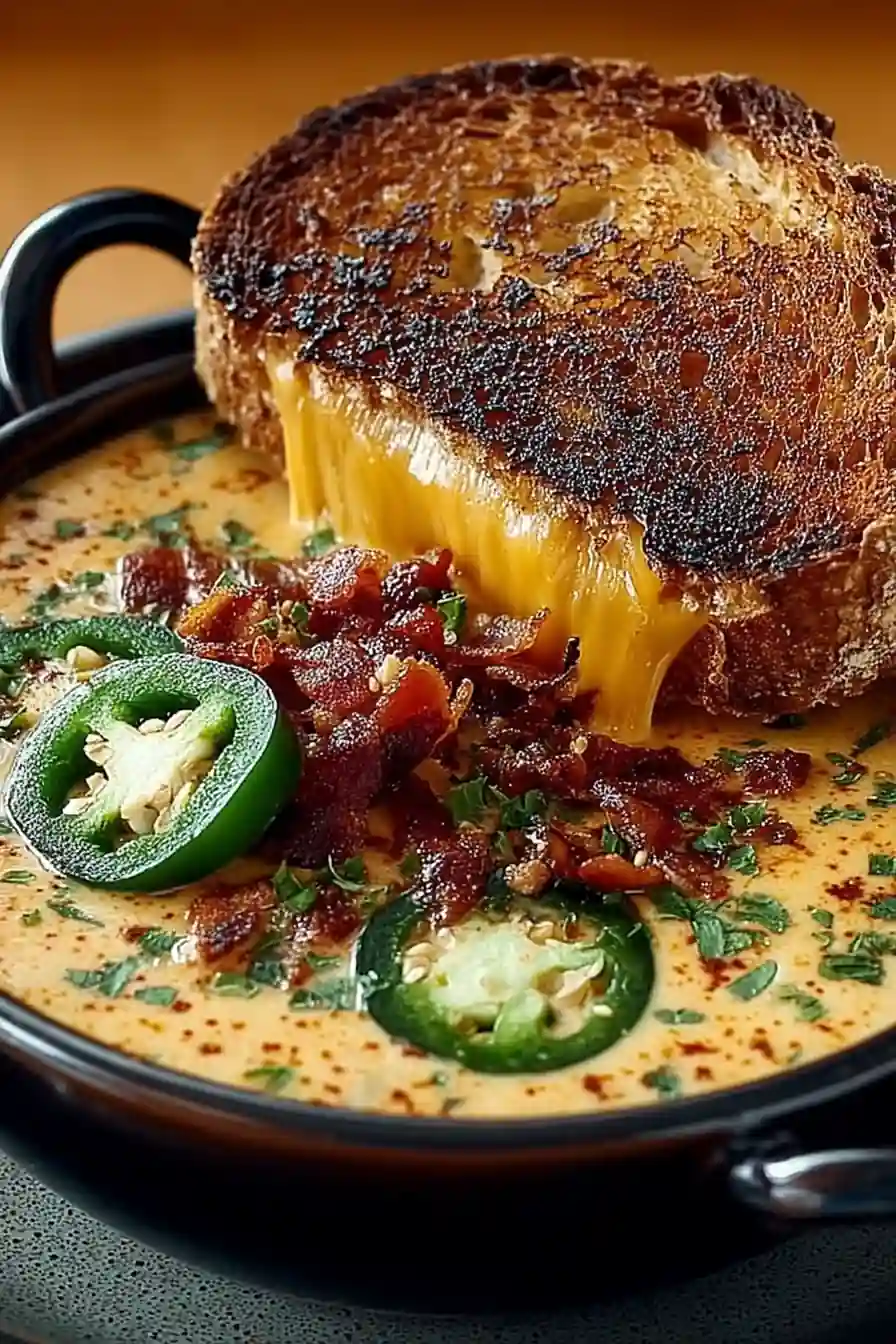 Turn up the heat and cozy up with this Spicy Jalapeño Popper Soup with Grilled Cheese Dippers 🔥 A creamy, cheesy bowl of pure comfort inspired by everyone’s favorite party appetizer the jalapeño popper! It’s rich, smooth, and perfectly balanced with smoky spice, crispy bacon-style topping, and melty cheese. Paired with buttery grilled cheese dippers, it’s the ultimate soup-and-sandwich combo for chilly nights, game day, or weekend indulgence. The best part? It comes together in under 30 minutes with simple ingredients you probably already have. Grab your spoon (and your toasties!) this soup is going viral for a reason! 😋