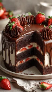 Serve this cake at room temperature, and slice it into generous pieces. You can garnish it with whipped cream or additional fresh strawberries for extra flair.