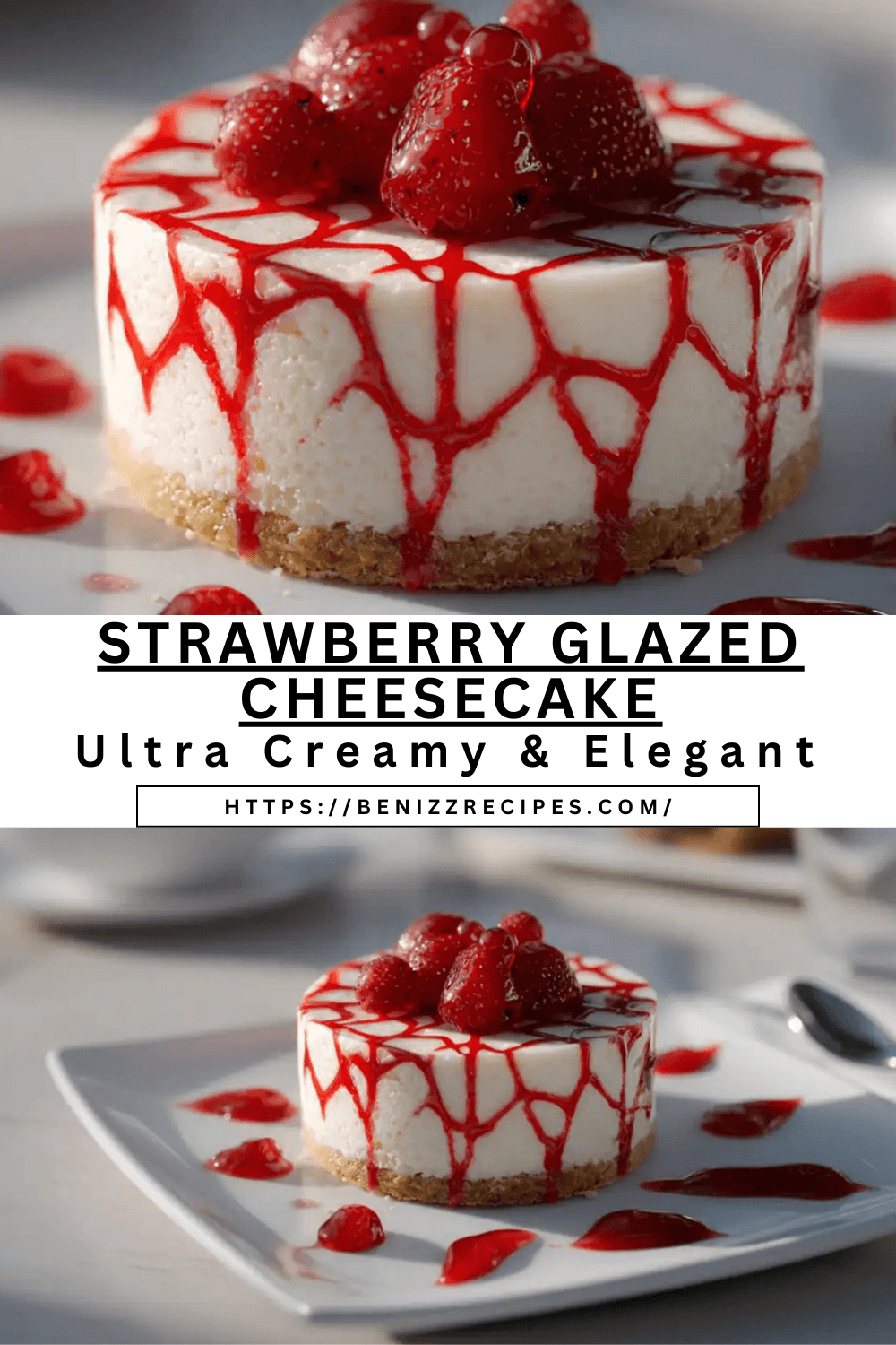 - Decorate: Spoon or drizzle glaze artistically over cheesecake. Garnish with fresh strawberries. ✨