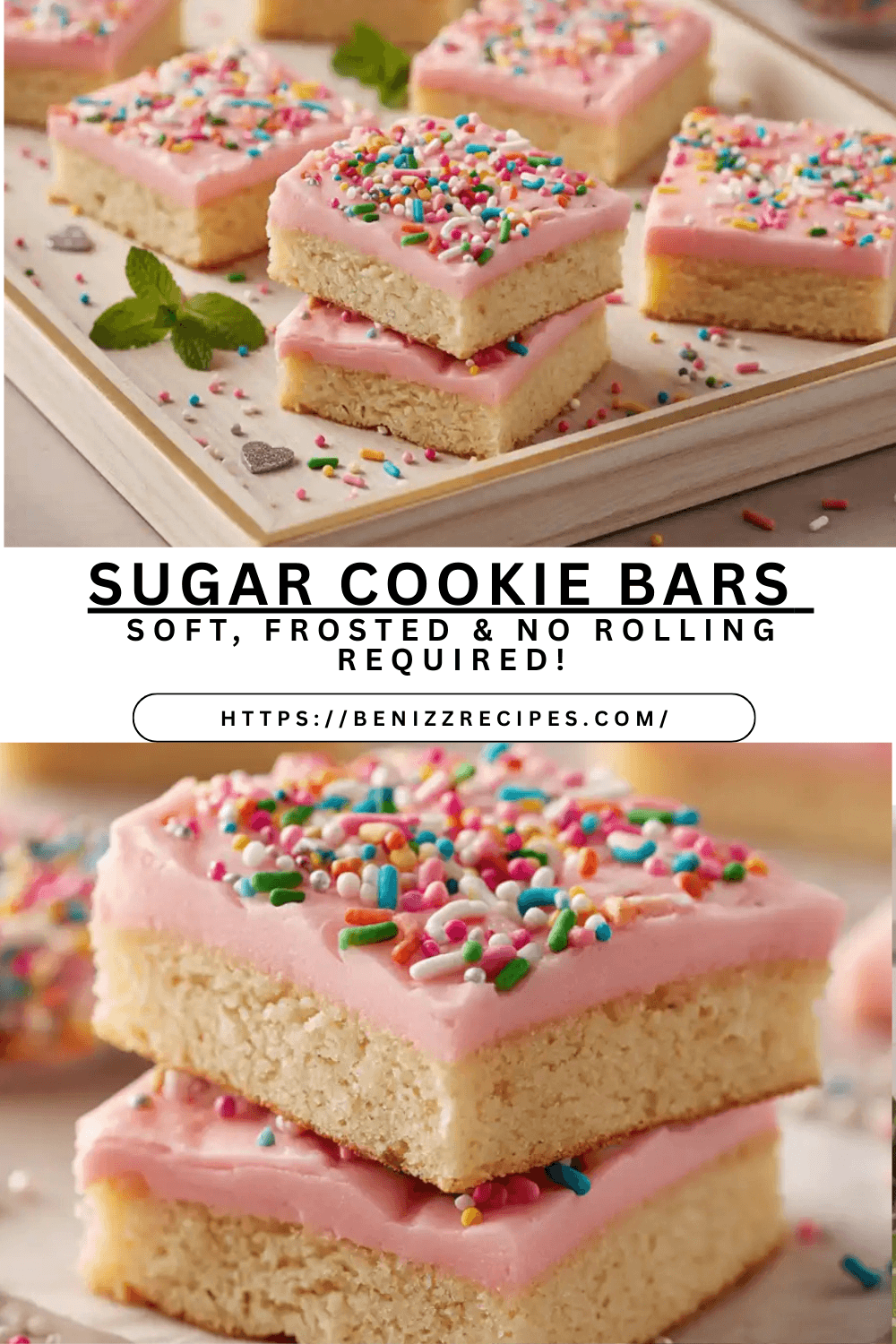 These Sugar Cookie Bars are the ultimate shortcut to soft, bakery-style sugar cookies — without rolling pins, cookie cutters, or chilling time. Thick, fluffy, and melt-in-your-mouth tender, they bake in one pan and get topped with creamy vanilla buttercream and colorful sprinkles. Perfect for birthdays, holidays, bake sales, or when you need an easy dessert for a crowd. If you love soft frosted sugar cookies, this simplified bar version will become your new go-to recipe.