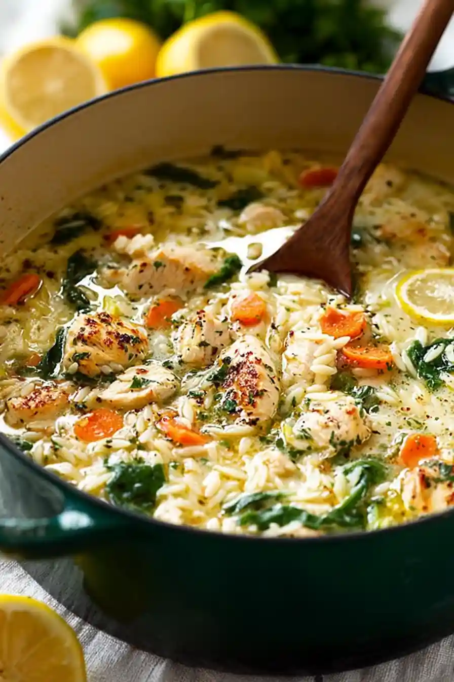 When you’re craving comfort without the heaviness, this Lemon Chicken Orzo Soup is the answer! Tender shredded chicken, bright lemon, and perfectly cooked orzo come together in a silky, flavorful broth that’s both cozy and refreshing. It’s a one-pot wonder that’s easy to make and ready in under 40 minutes perfect for busy weeknights, meal prep, or when you need a soothing, nourishing bowl. Light, hearty, and loaded with protein, this soup is the perfect balance of fresh and comforting! 🌿