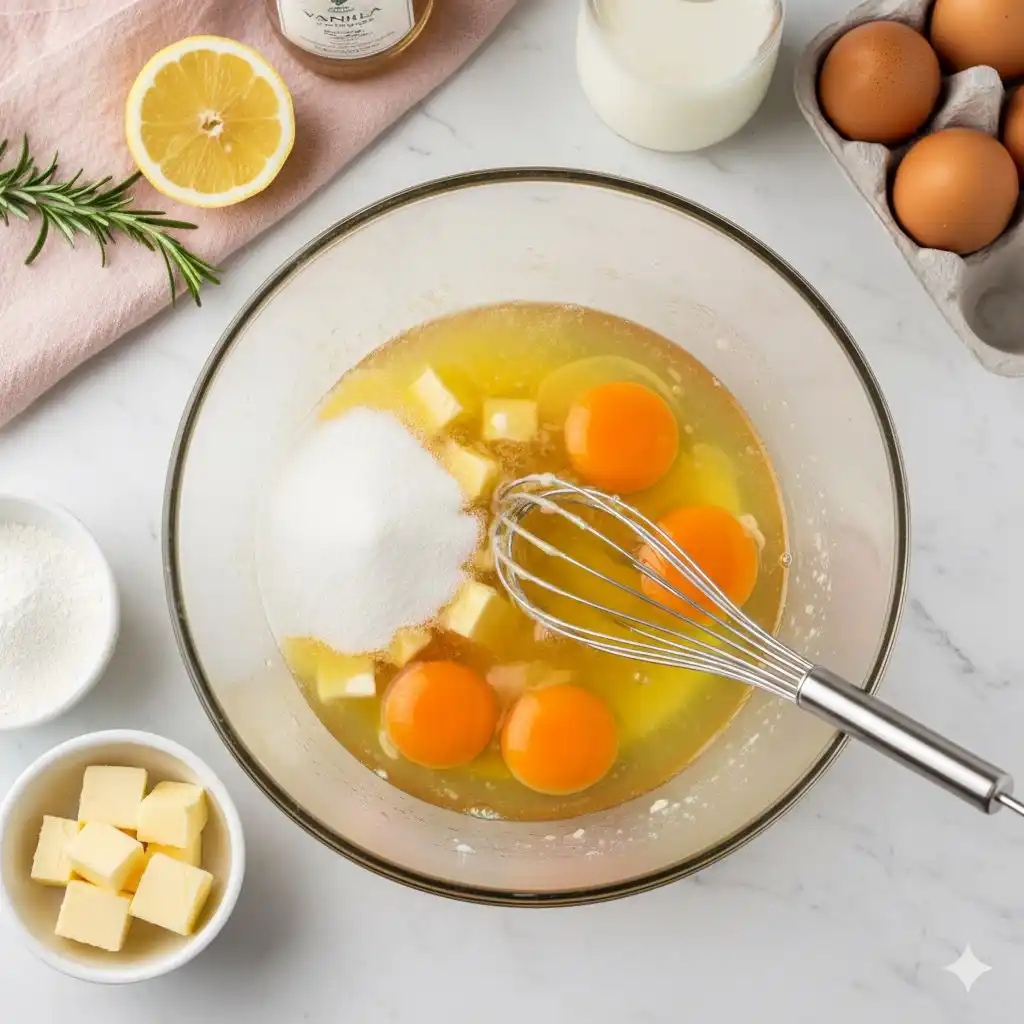 3. Cream butter & sugar: In a large bowl, beat butter and sugar for 2–3 minutes until light and fluffy.