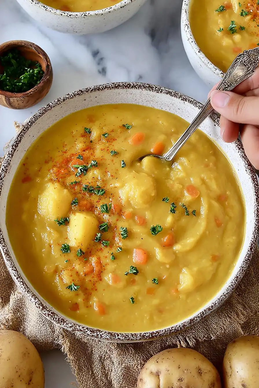 This Vegan Potato Soup is the ultimate bowl of plant-based comfort — creamy, rich, and soul-warming without a drop of dairy. 🌿 Made with tender potatoes, caramelized onions, and a hint of garlic, this cozy soup is the perfect easy dinner for chilly nights or lazy weekends. The secret? A blend of cashews and plant-based milk gives it that luxurious, velvety texture you’ll swear came from cream. 💛 Plus, it’s simple to make, budget-friendly, and meal-prep approved. One pot, minimal ingredients, and pure comfort in every spoonful!